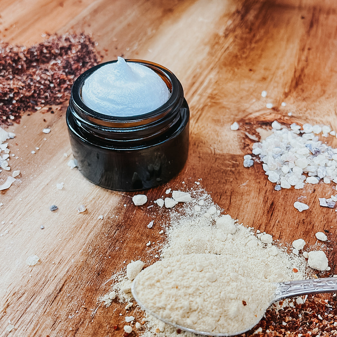 Gippsland grass fed tallow infused with frankincense resin, rosehip and kakadu plum, castor oil